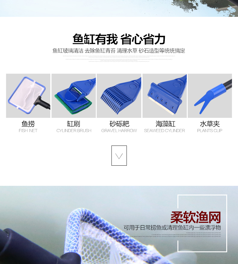 Sensen SX fish tank cleaning sets fishing nets scraping algae knife water grass clip fish tank brushed glass wipe cleaning tool