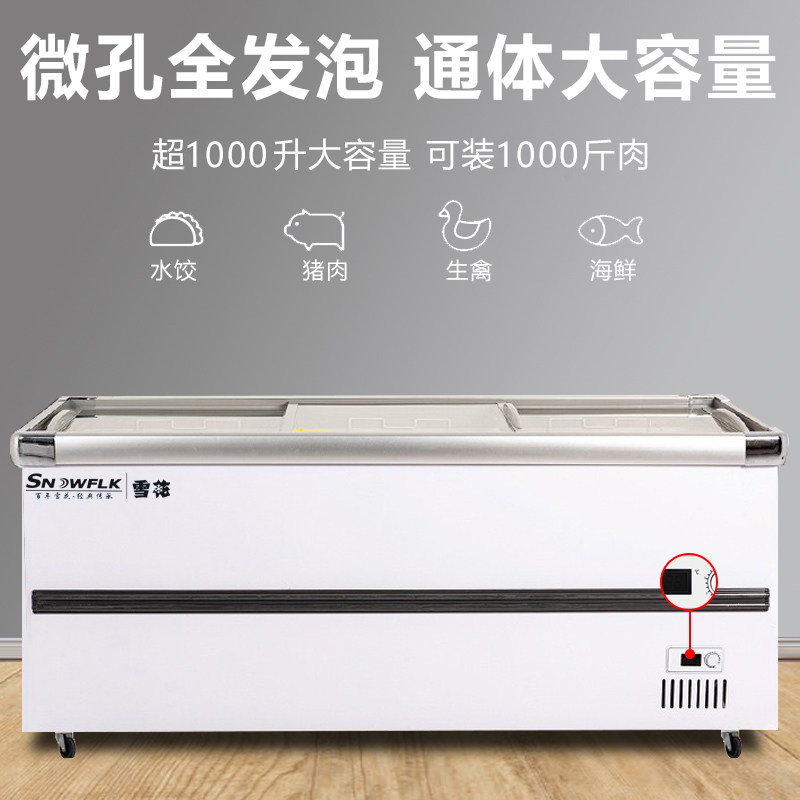 Snowflake Freezers Commercial Large Capacity Freezer Refrigerated Display Case Refrigerated Frozen Dual-use Transparent Glass Horizontal Island Cabinet