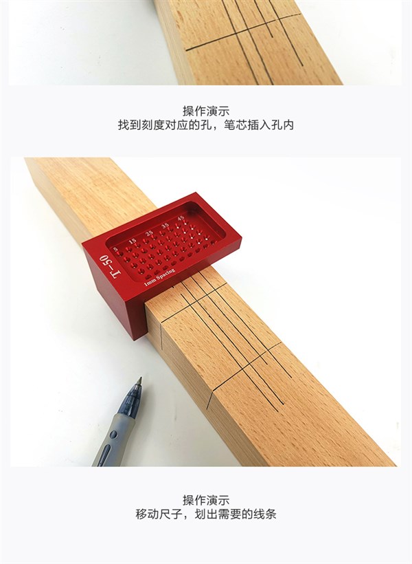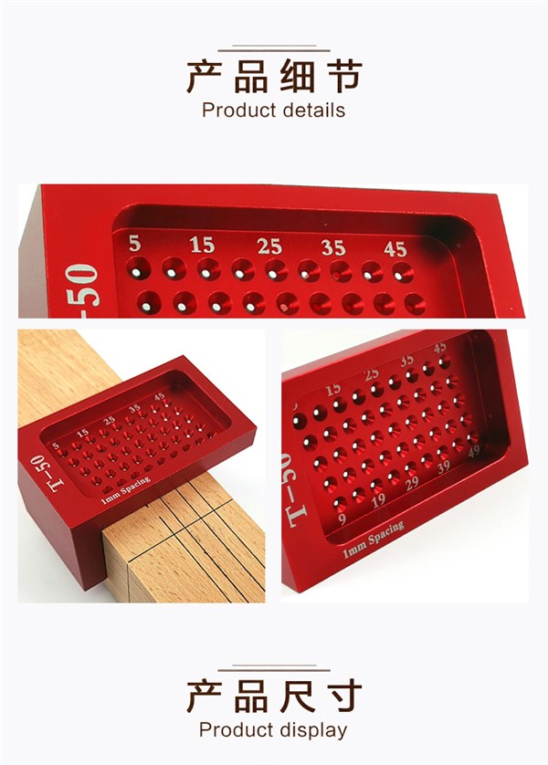 T50 woodworking scribe ruler hole ruler aluminum alloy T-shaped ruler woodworking scribe mini scribe