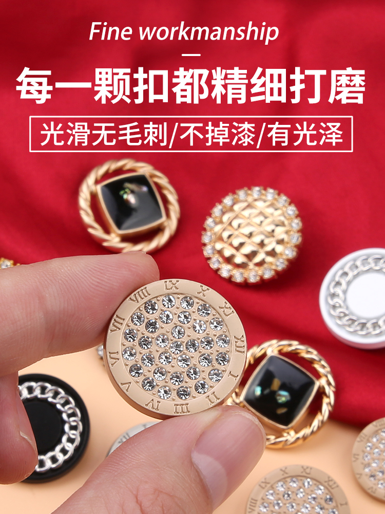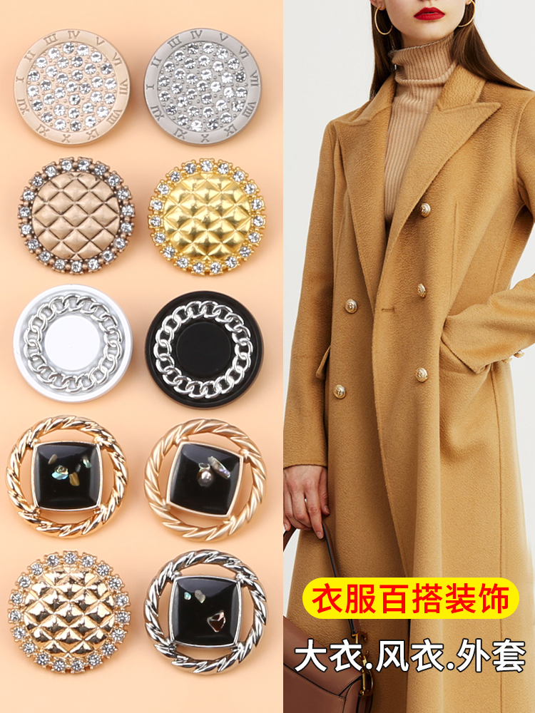 Metal Button Coat Trench Coat Versatile Decorative Button Top Sweater Pearl Button Rhinestone Diamond Button Accessories
