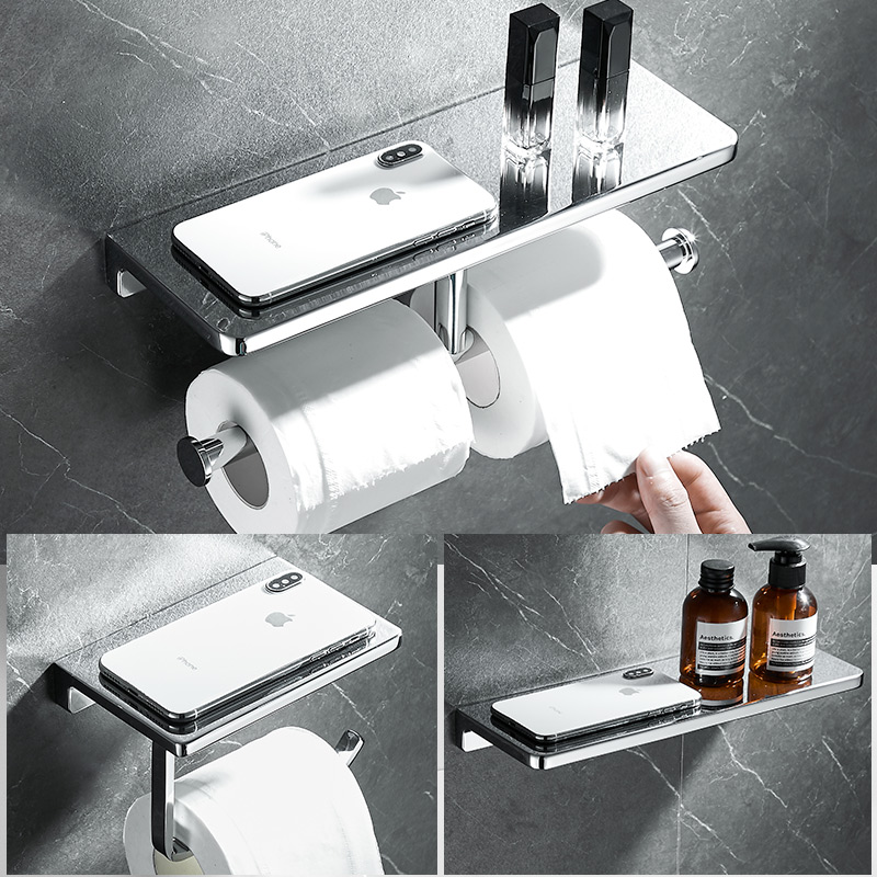 Light extravagant solid chrome plated multifunction toilet paper holder toilet paper holder mobile phone tablet shelve paper rack hardware engineering