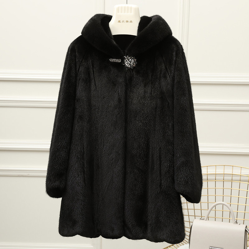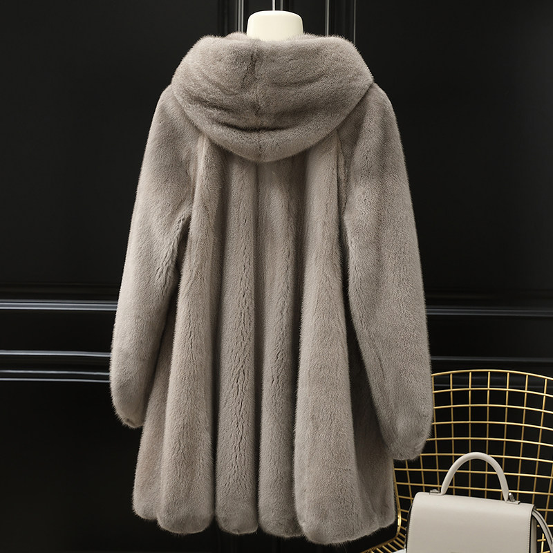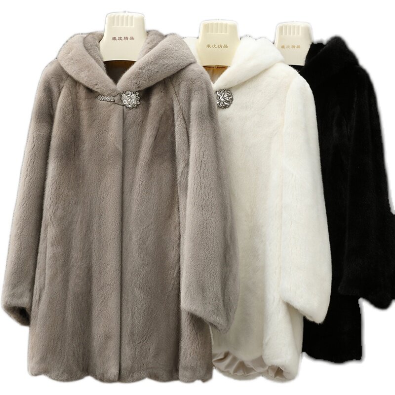 Mink fur coat women's whole mink fur coat mid-length Haining 2022 winter new fashion with hooded fur