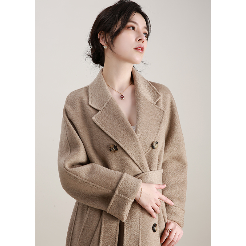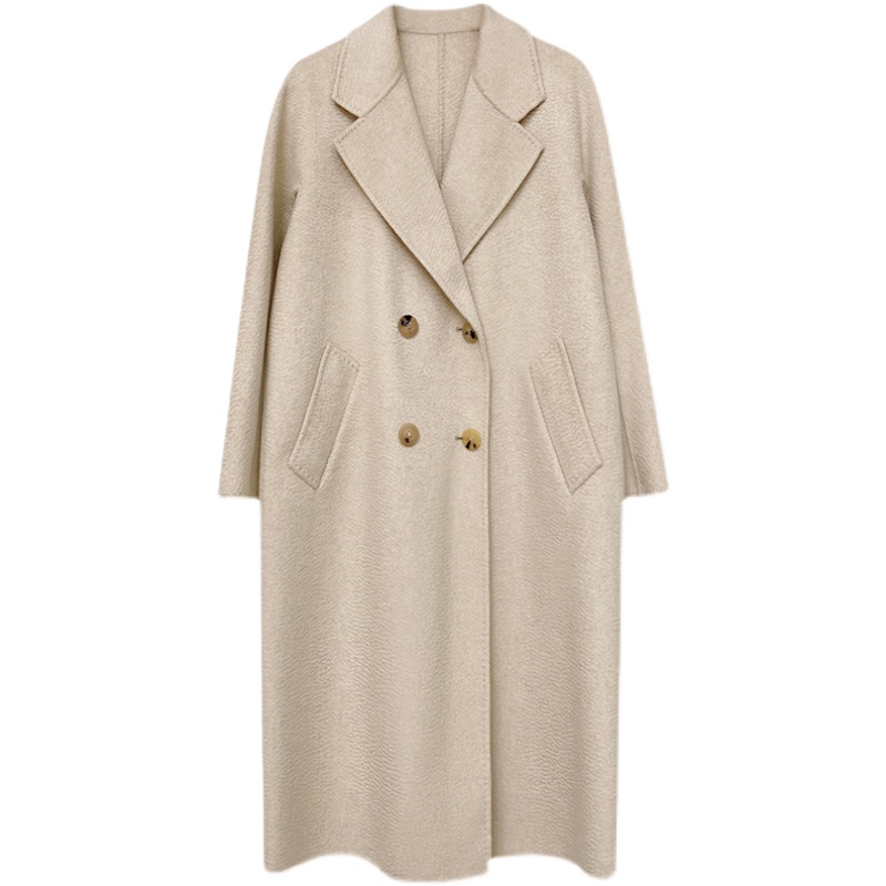 NZ gake heavy 100 suede undyed pure kashmir wool double-row buttoned water corrugated bifacial cashmere Grand coat woman medium long version