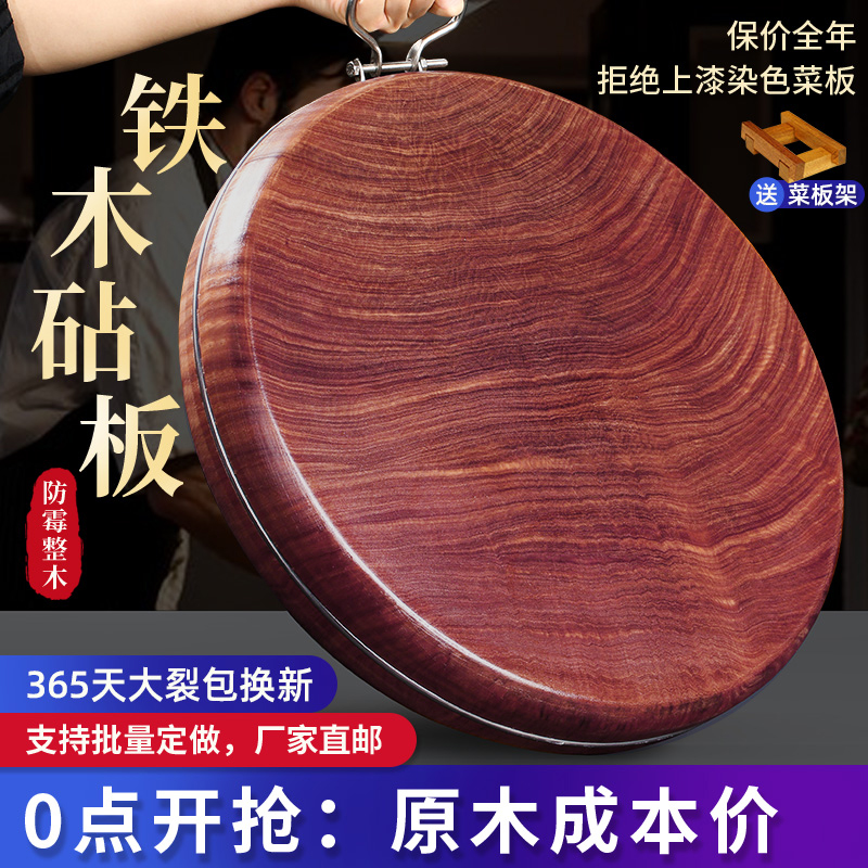 Zhengzong Iron Wood Chopping Block Antibacterial And Mildew Home Cutting Cutting Board Solid Wood Cutting Board Kitchen Case Board Thickened Round Big Vegetable Pier