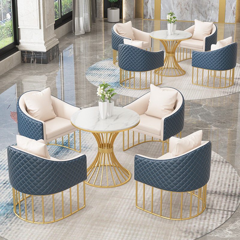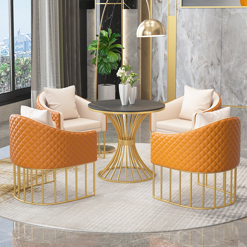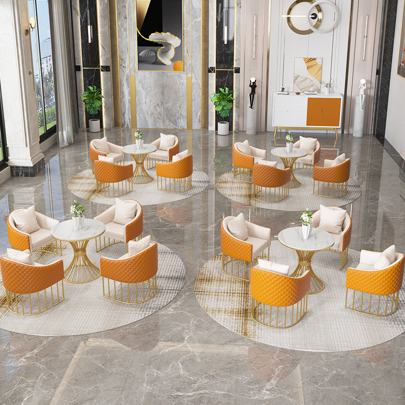 The sample house exhibition center receives leather table and chair combination light luxury minimalist hotel lobby negotiation office area one table and four chairs