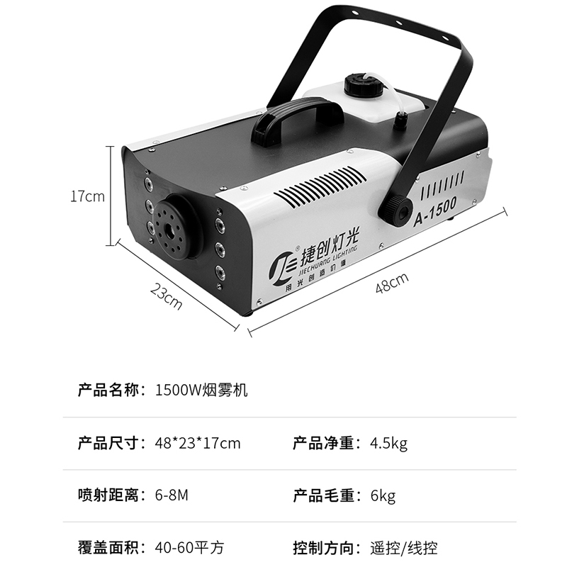 (Dual control) 1500 watt colorful classic (smoke spray 6 meters) + 2 bottles of smoke oil