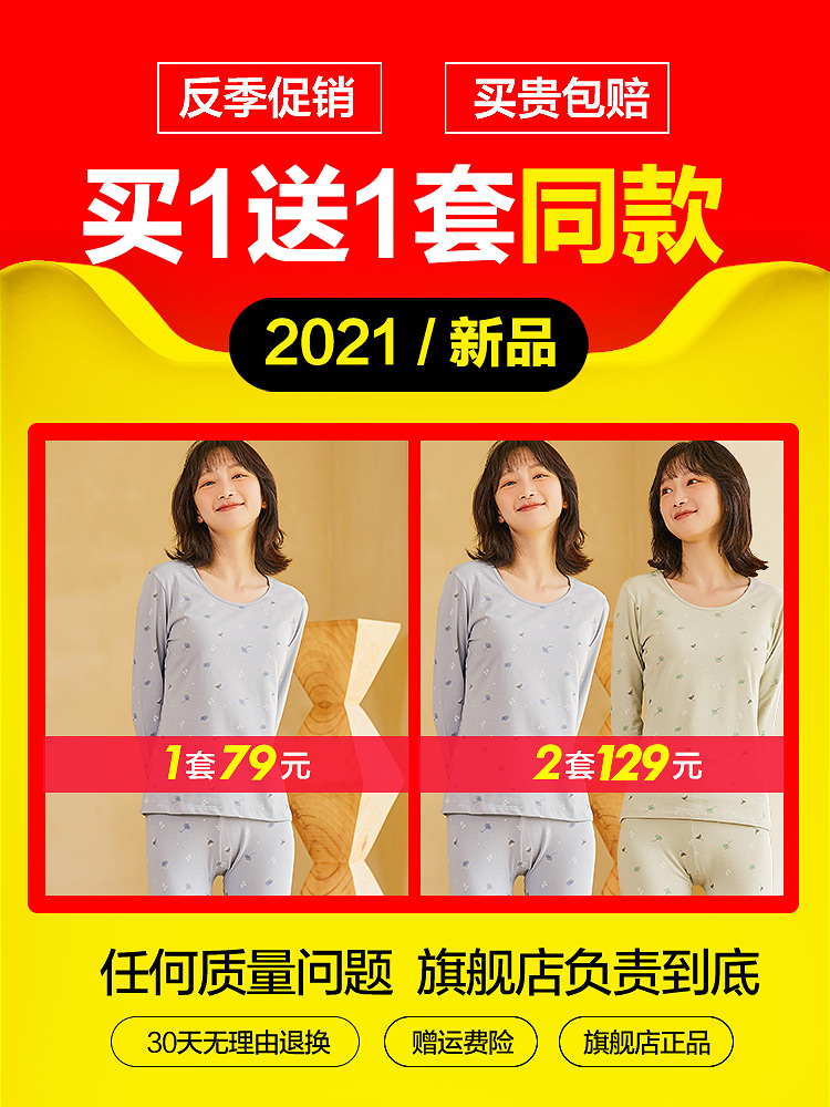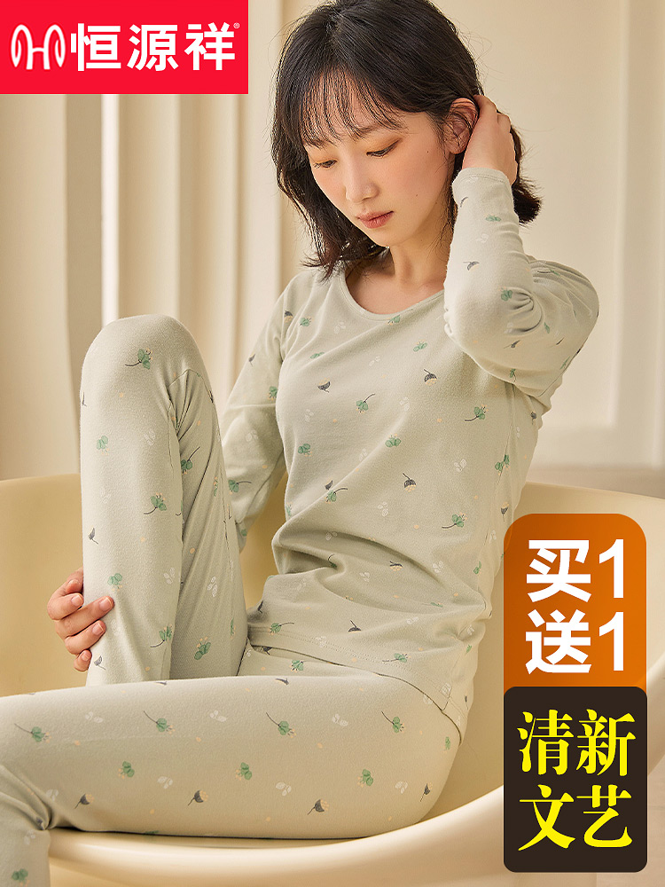 Hengyuanxiang hot clothes women cotton sweater thin girl students autumn clothes sanitary pants set base constant temperature winter
