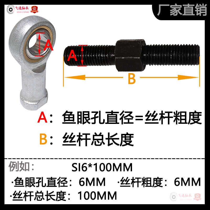 Fisheye bearing pull rod SI6 joint universal connecting rod ball head screw rod double-headed thread positive and negative thread M6