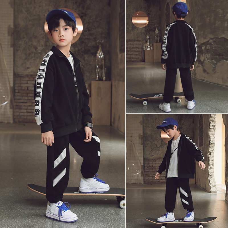 Tide brand boys' suit 2022 new autumn clothes children's middle-aged and older children's tops Korean style fashionable sports handsome two-piece set - Taobao