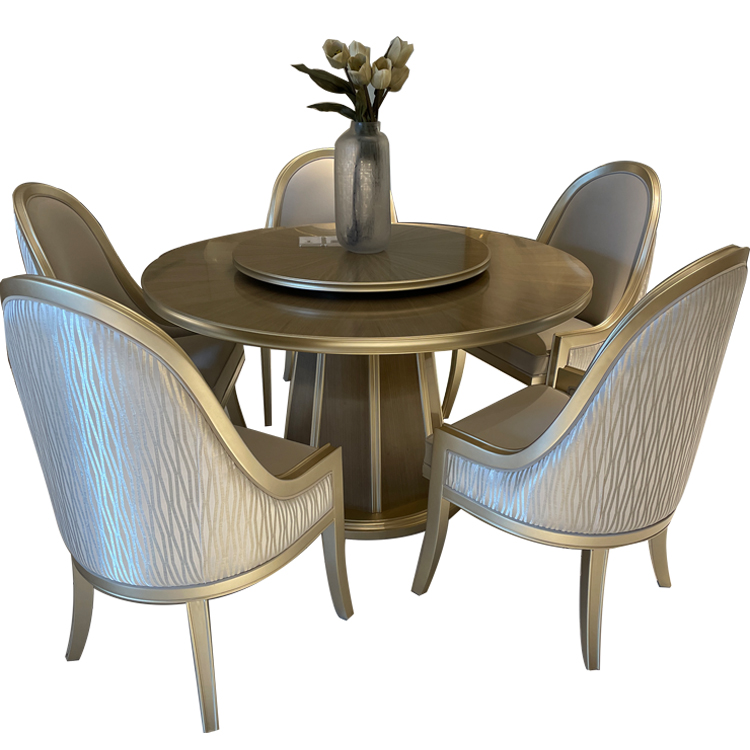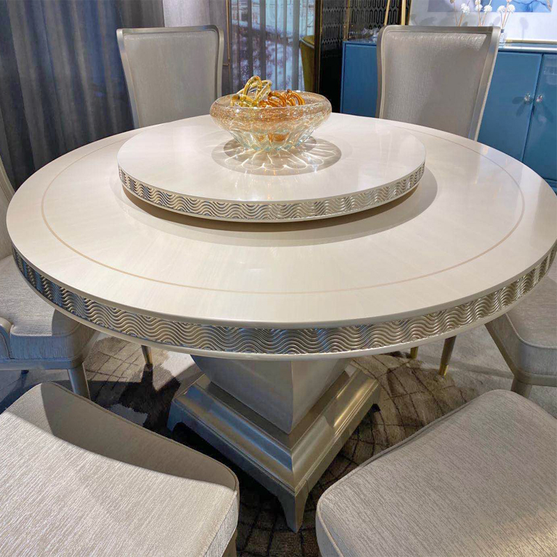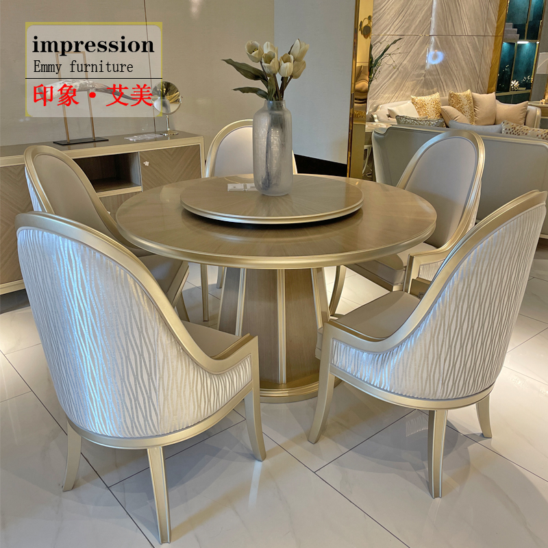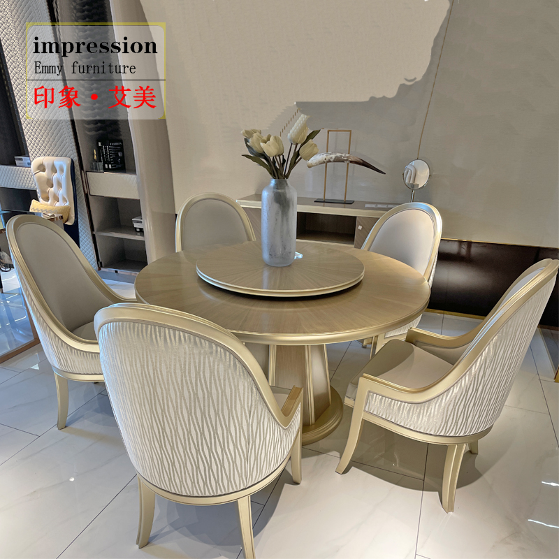 American light lavish solid wood dining table and chairs combined rear modern minimalist one table six chair round with turntable villa custom furniture-Taobao