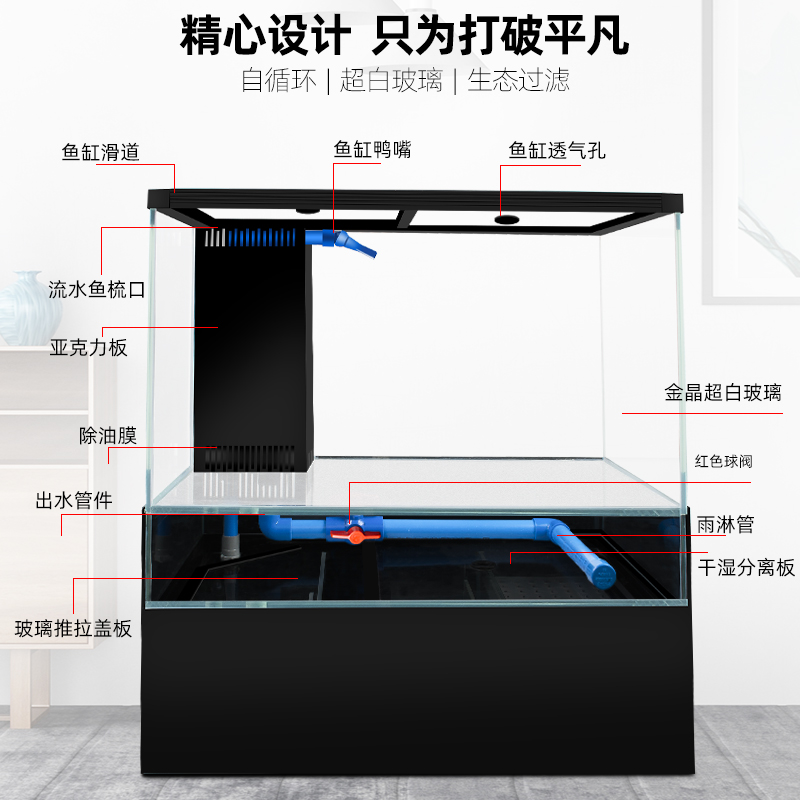 Bottom filter fish tank custom ultra-white glass fish tank living room small aquarium free water change ecological bottom filter one tank