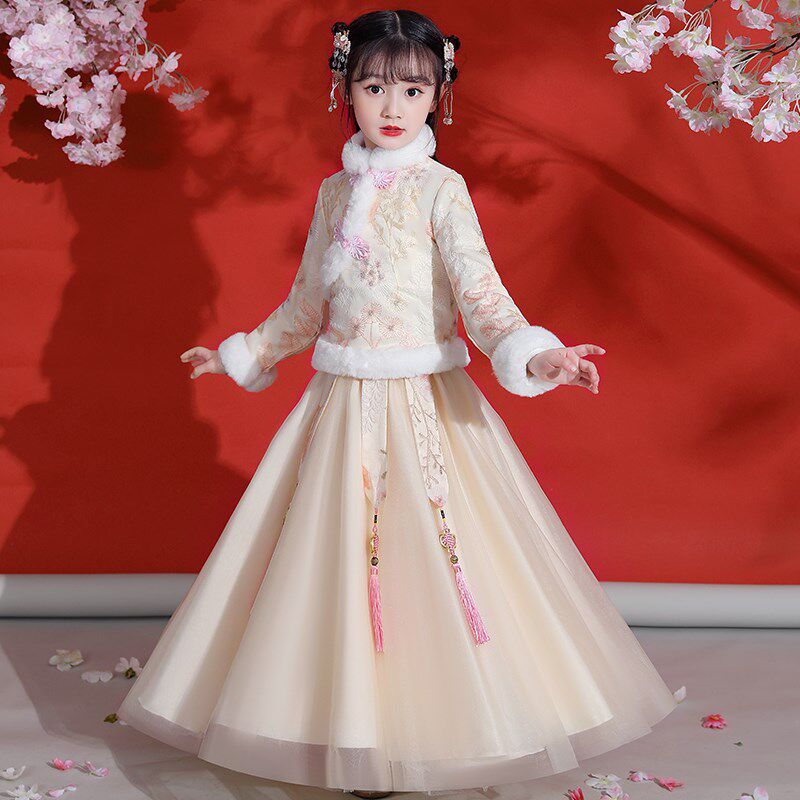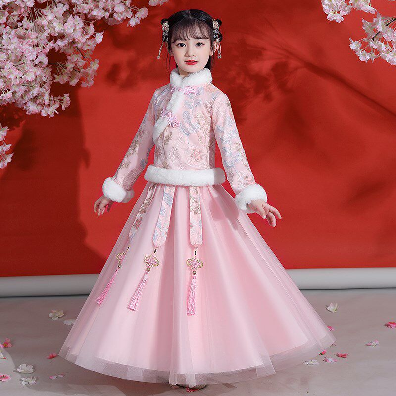 Laxia Belhan Clothing Girl Winter Clothing China Wind Tang Dress Thickened Winter Chinese New Year Dress New Year Dress Children's Ancient Clothes