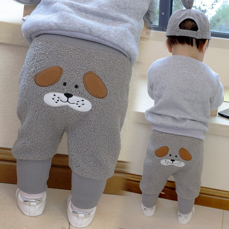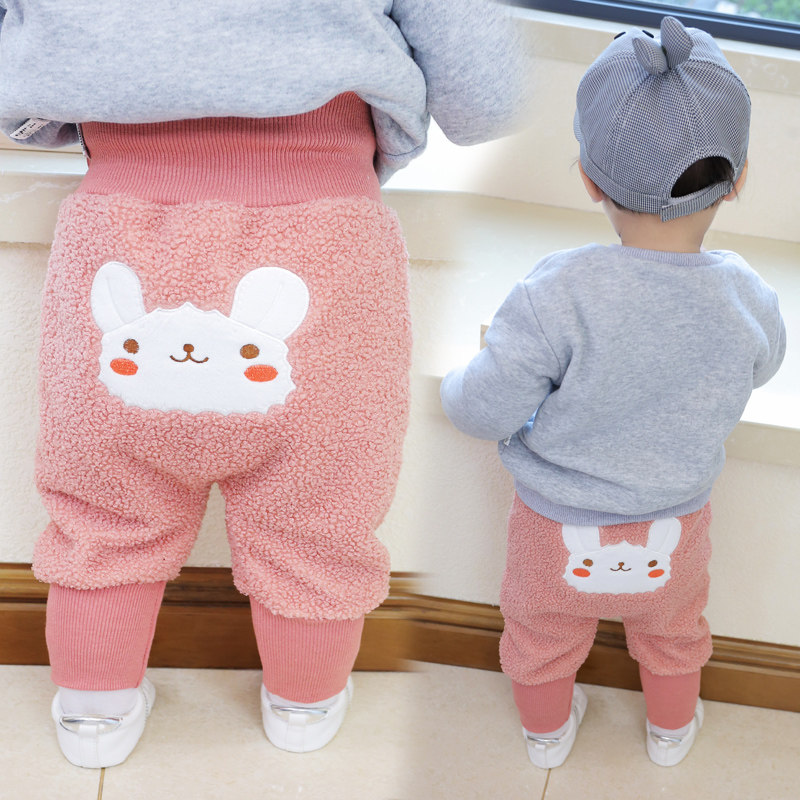 Baby gush pants autumn and winter foreign pie new integrated suede fart pants 6 months 8 baby High waist and belly protection big PP pants