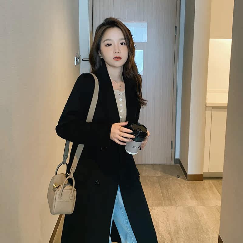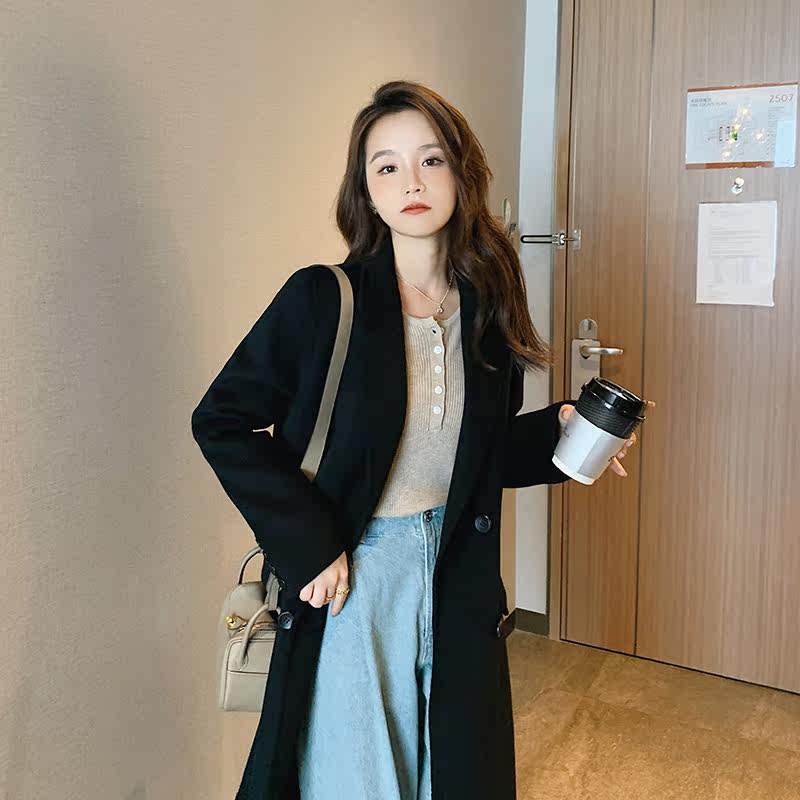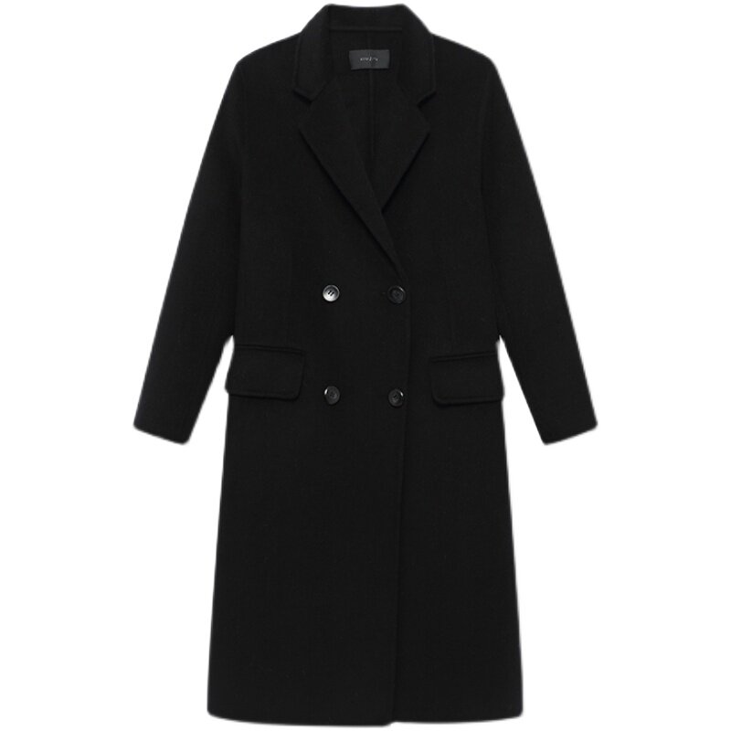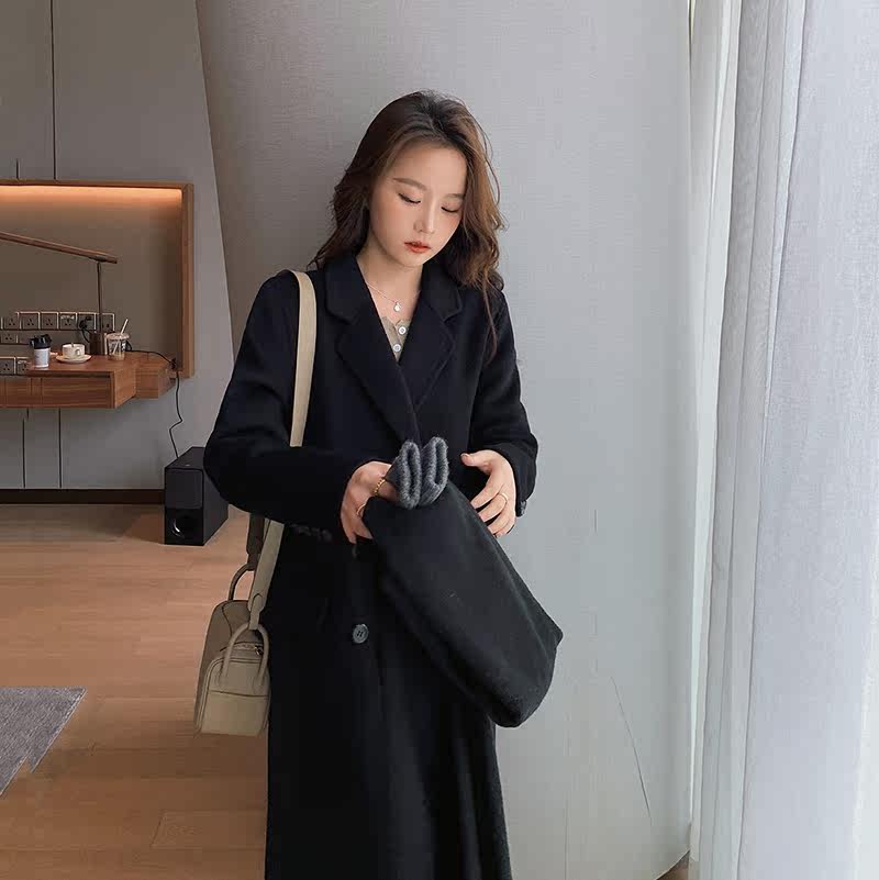 Black bifacial cashmere dresses with a long version of the wool suit What to do with the fur coats 2021 The autumn and winter new