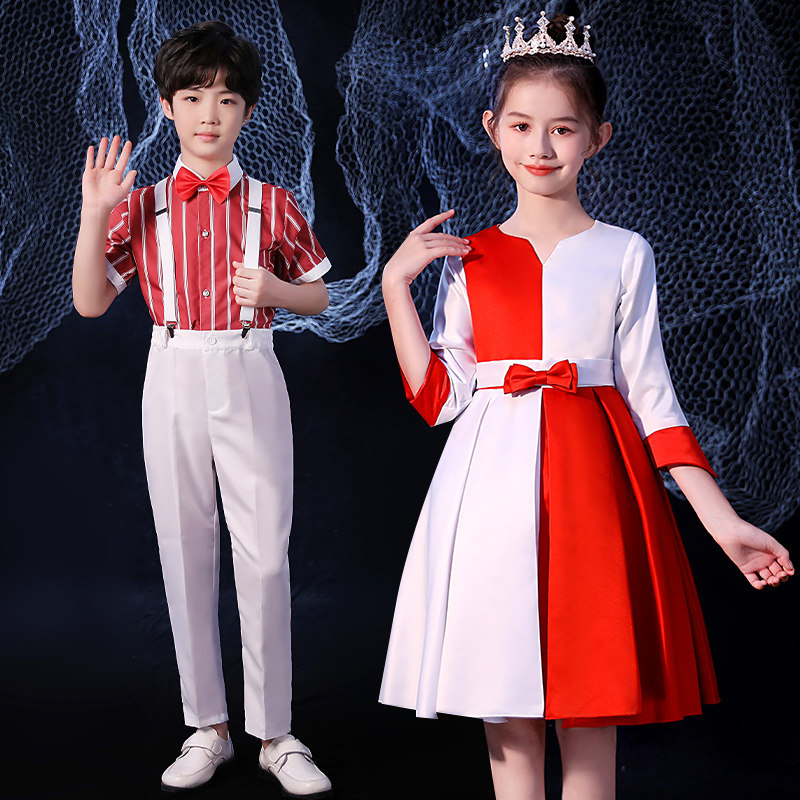 Red Girls Sleeveless Dress Red Girls Long Sleeve Dress Sky Blue Girls Sleeveless Dress Sky Blue Girls Long Sleeve Dress Red Boys Short Sleeve Suit Red Boys Long Sleeve Suit Blue Boys Short Sleeve Suit Blue
