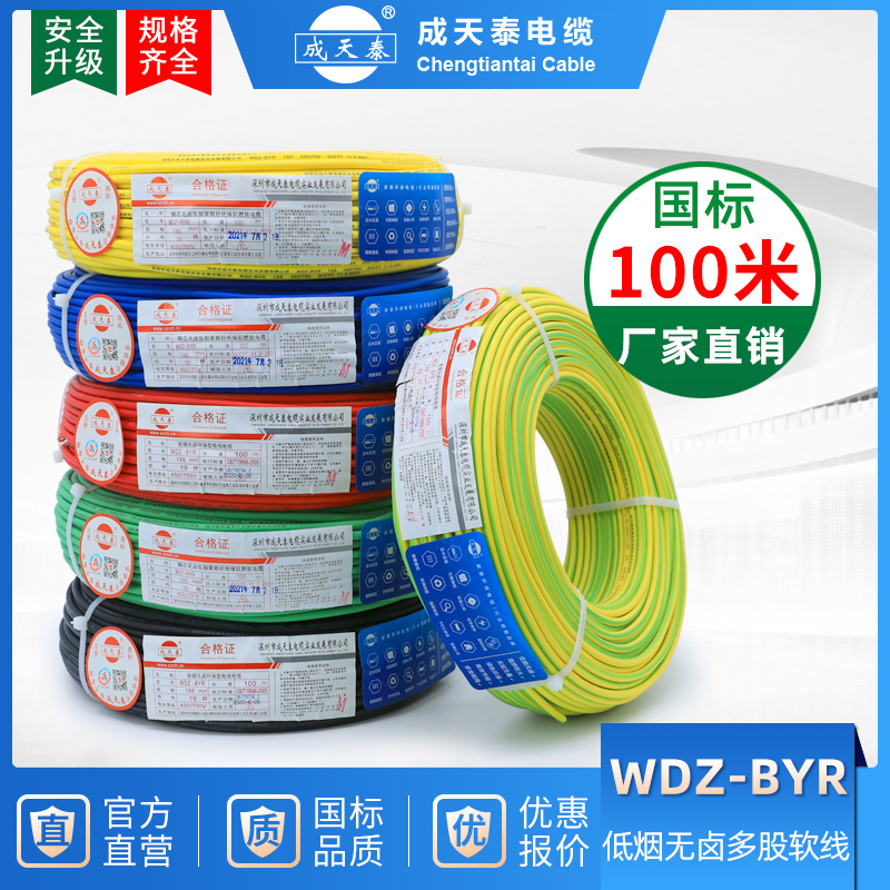 WDZBYR Chengtiantai household wire national standard copper core 4 square cable wire 1 5 2 5 6 high temperature wire copper soft wire