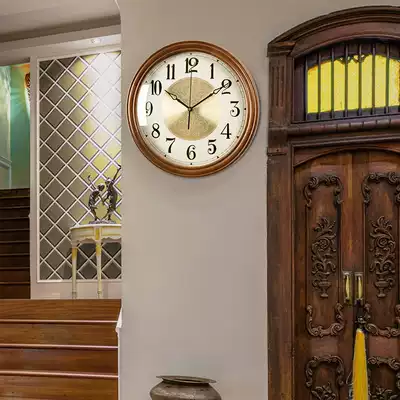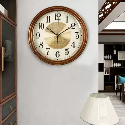 New Chinese style solid wood mute wall clock simple living room clock American retro round modern fashion quartz clock