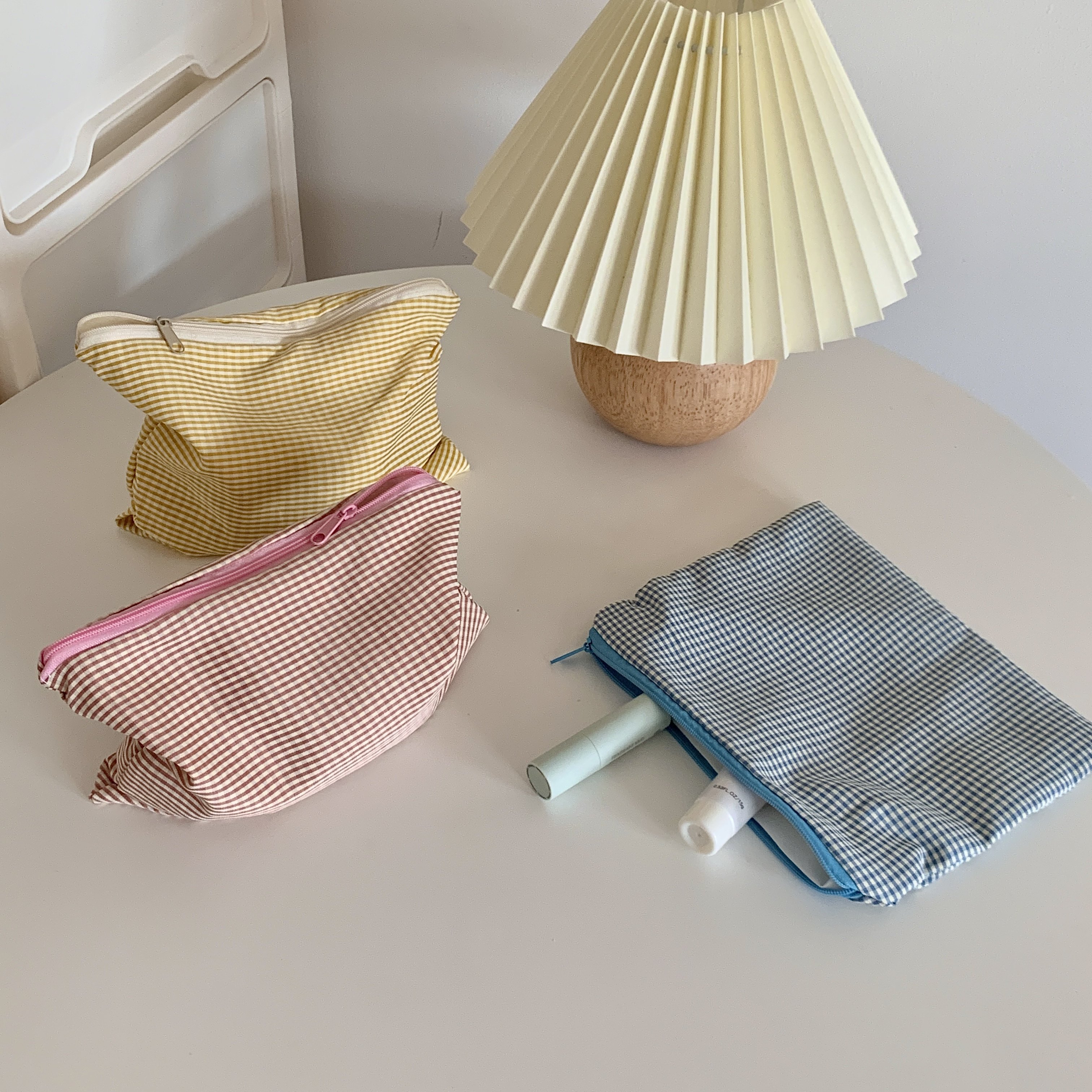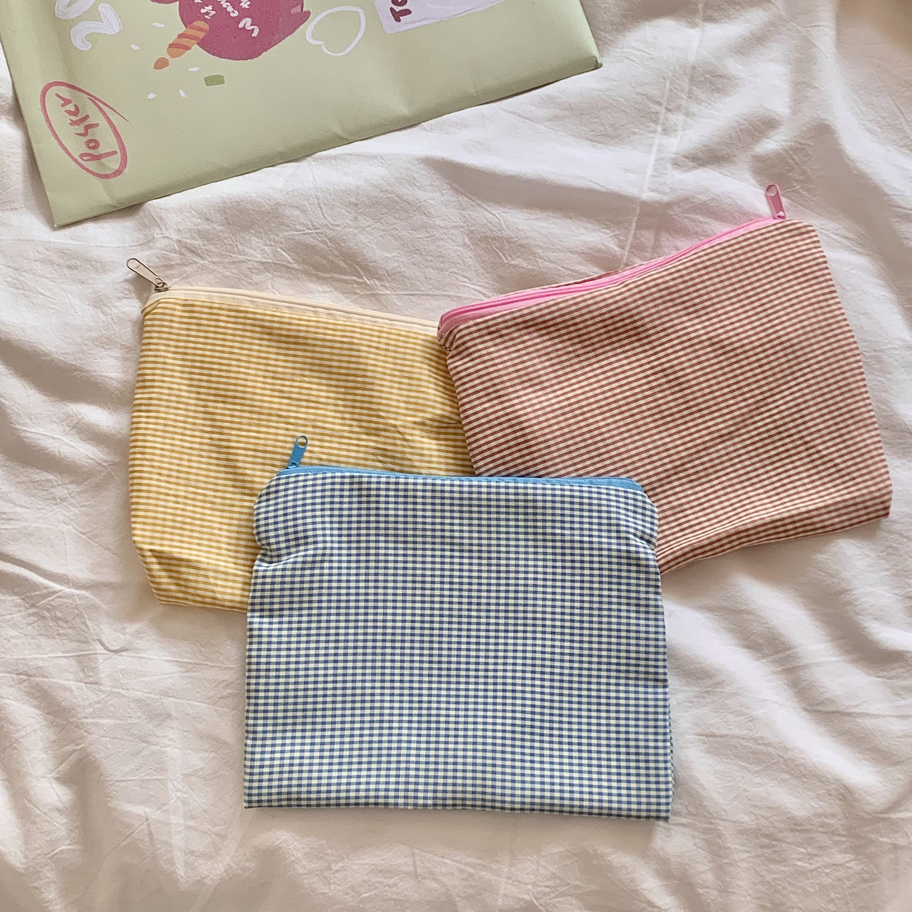 Ice cream plaid three-color entry~going out portable cosmetic bag clutch bag sanitary napkin storage bag multi-functional bag