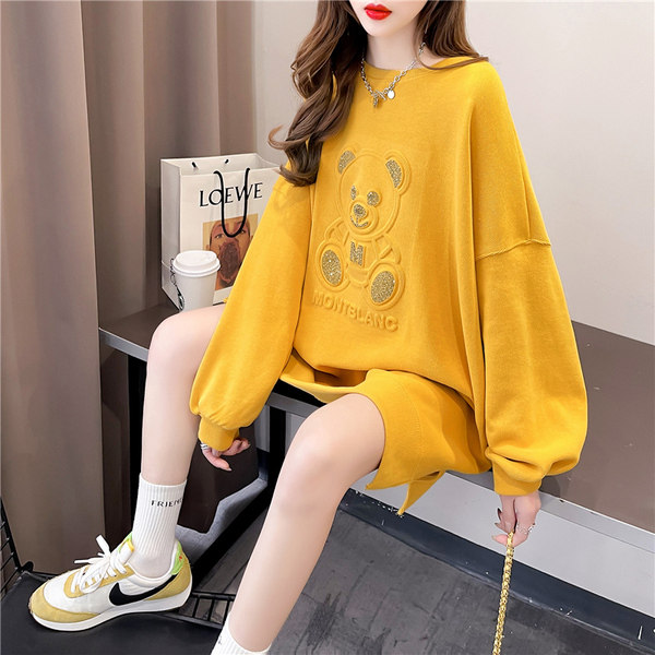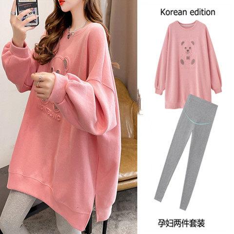 Large size dress pregnant woman blouses in spring and autumn fashion Korean version T-shirt two-piece suit 200 catty of loose cover open fork wee