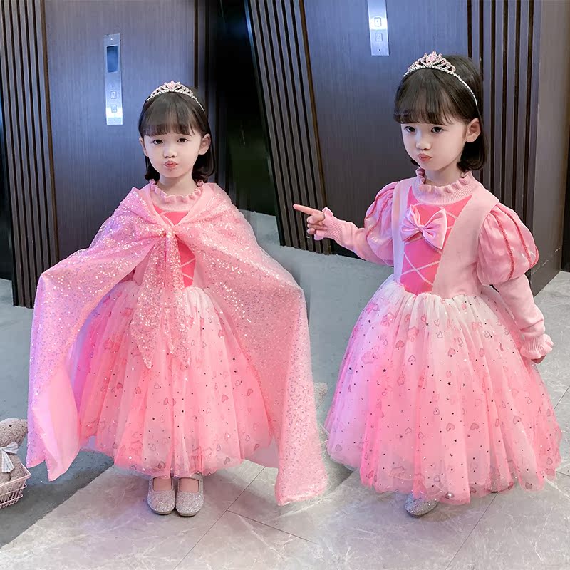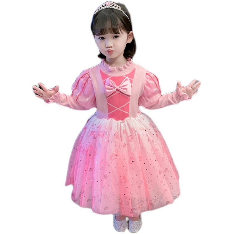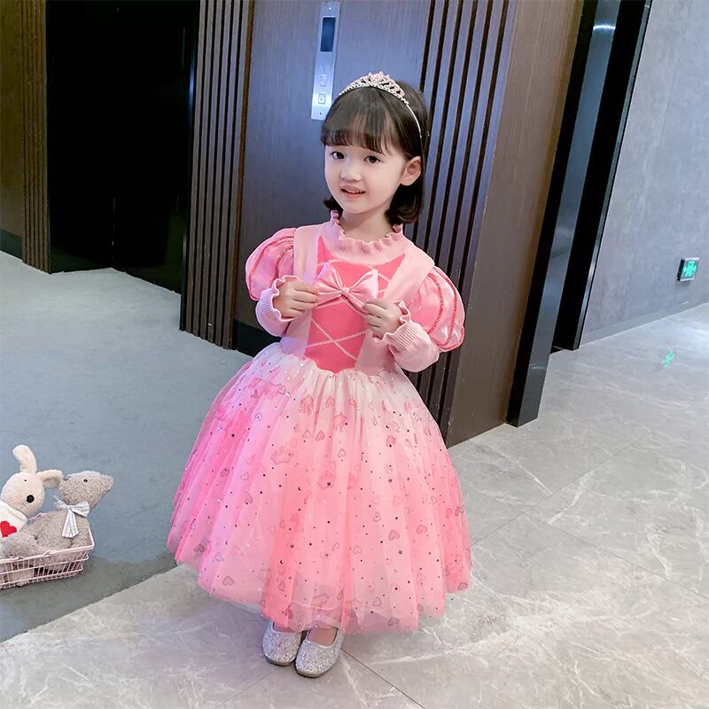 Girl Sleeping Beauty Princess Dresses Children Love Loo Sweater Dress Pink Elsa Dresses Little Girl Birthday Gown