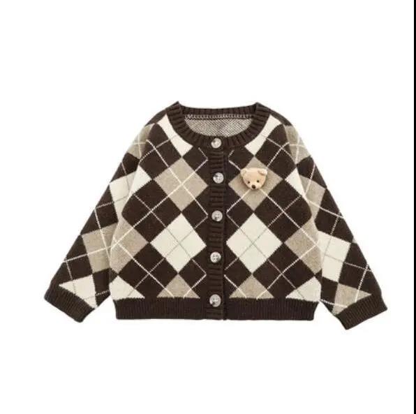 Child Clothing Girl Knit Waistcoat Spring Autumn New Retro College Wind Rhombus in the Child Leisure Vest Fur Coat