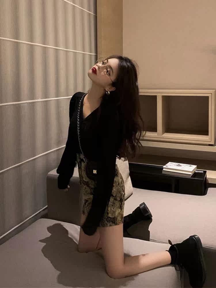 Black tops Handy Summer dress Single black coat Sweet summer suit Design single cat short skirt Net Red Goddess two pieces
