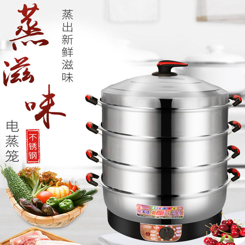 Macro Speed Electric Steam Boiler Home Large Capacity Multilayer Electric Steam Cage Multifunction Steamed Vegetable Steamed Buns Triple Stainless Steel Electric Pan