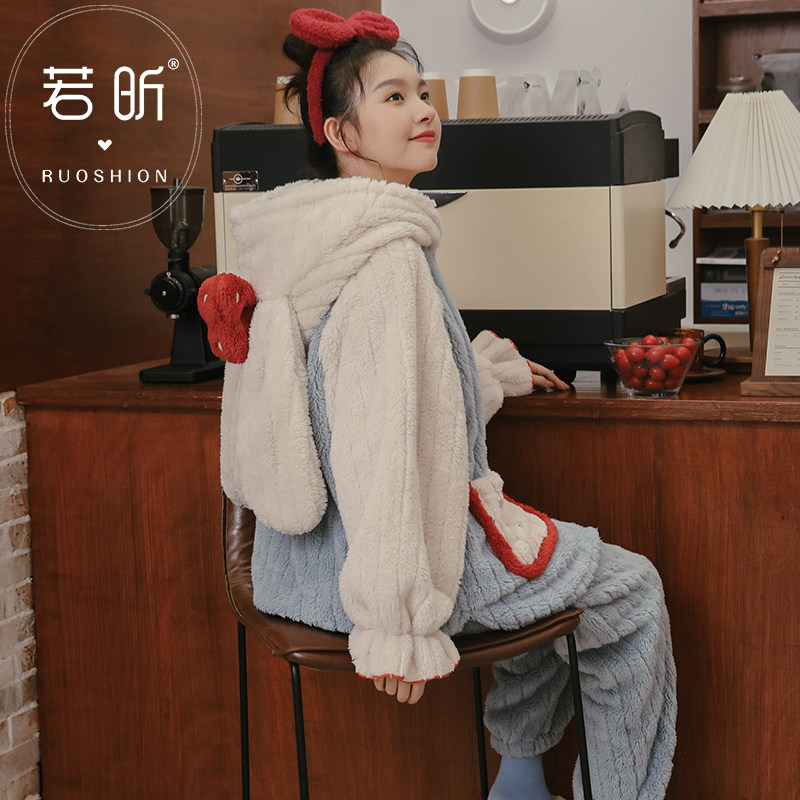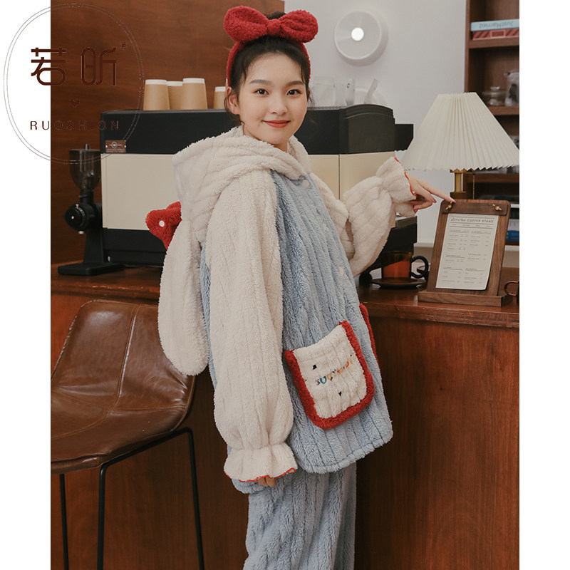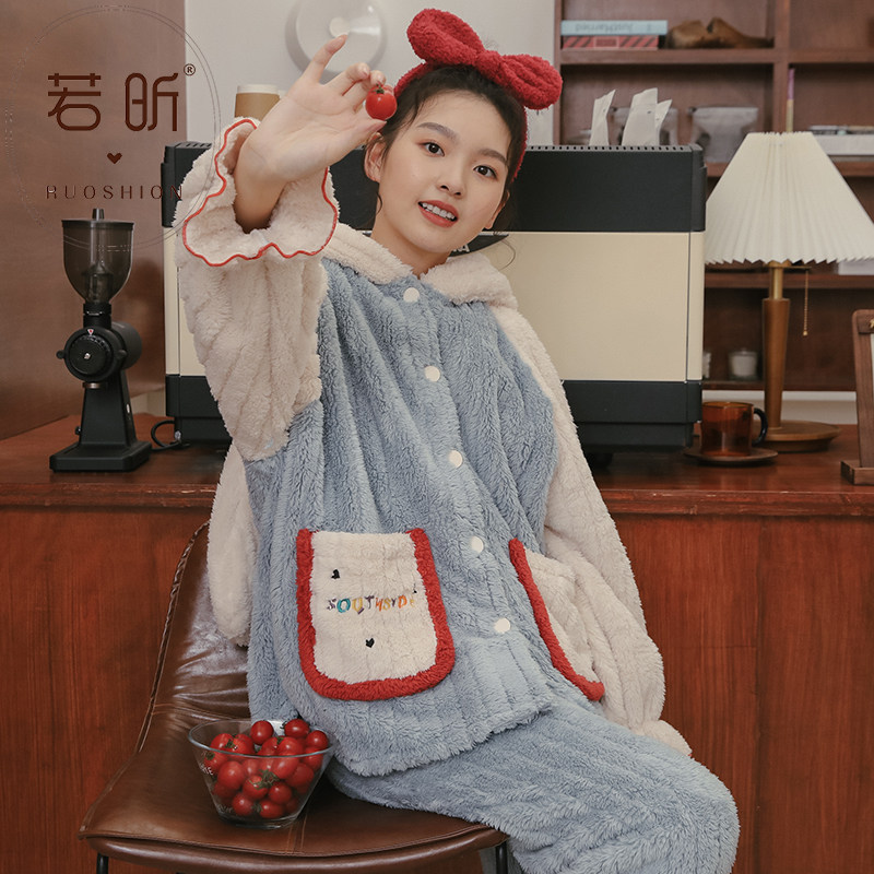 Coral Fleece Pyjamas Lady Spring Autumn Winter Money Sweet And Cute Thickened Flannel Suit Students Outwear Home Clothing