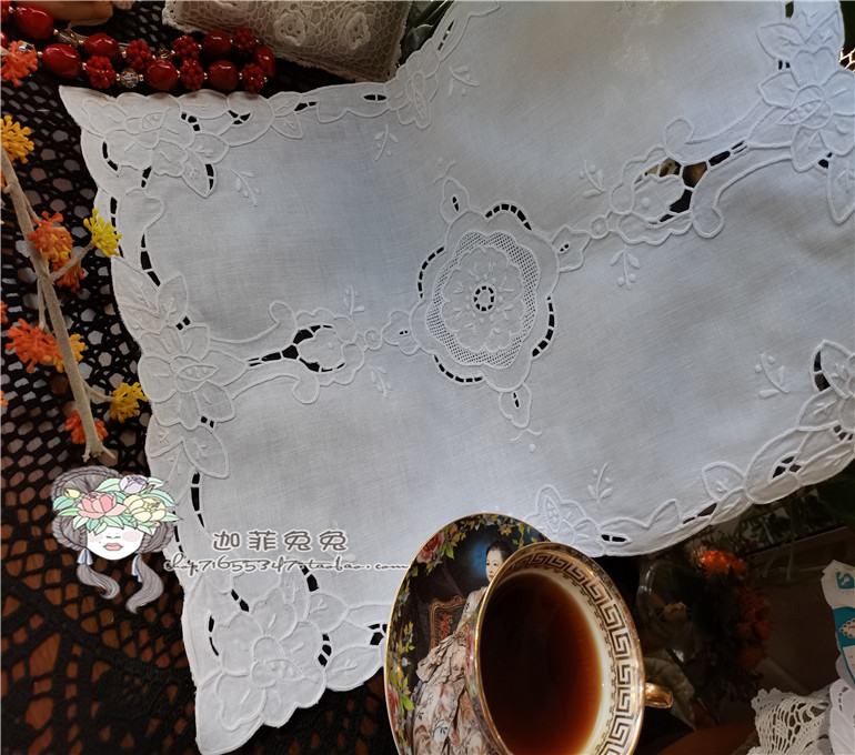 Ex-gratia foreign trade export European original single white cotton linen handmade embroidery buckle floral disc dining cushion disc cushion decorative cover towels