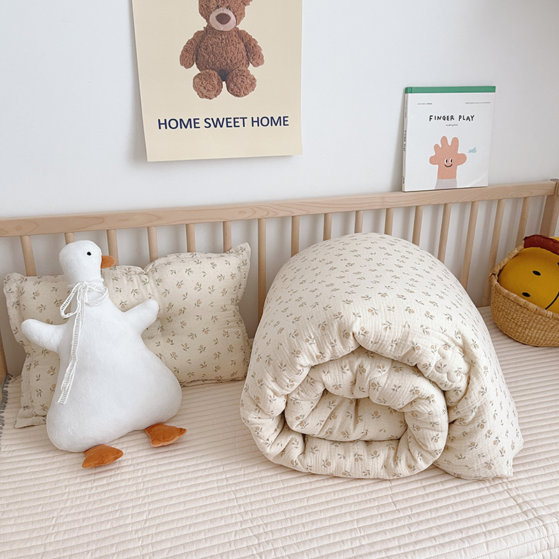 Infant Korean style double-layer wrinkled yarn soybean quilt children's small broken flower winter quilt spring and autumn quilt soft single quilt