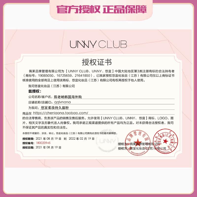 Cosmetics filing number Registration certificate number: