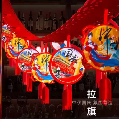 Mid-Autumn Festival Hanging Scene Decoration Shopping Mall Jewelry Store Decorations Eleven National Day ribbon pull flag hanging ornaments pull flowers