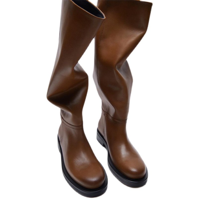 ZAR DTM Autumn New Women's Shoes Brown Vintage Cow Leather High Leather Boots 11005710105