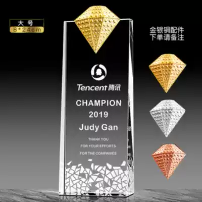 Crystal trophy creative colorful medal making color printing trophy custom lettering five-pointed star trophy employee authorization card