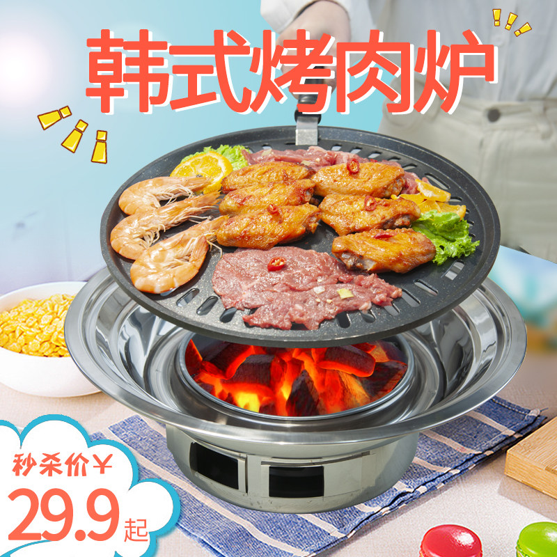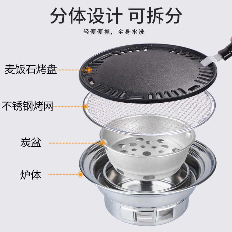 Korean barbecue stove household small carbon oven outdoor home barbecue charcoal round stainless steel smokeless oven