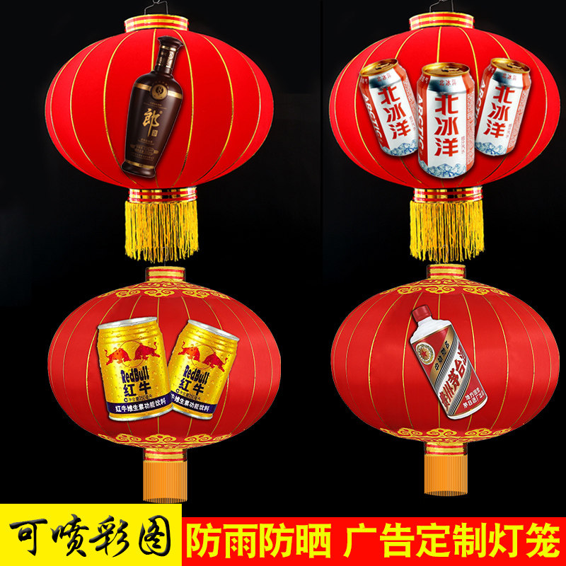 Customized outdoor iron mouth satin big red lantern advertisement printing day large waterproof lantern ornament