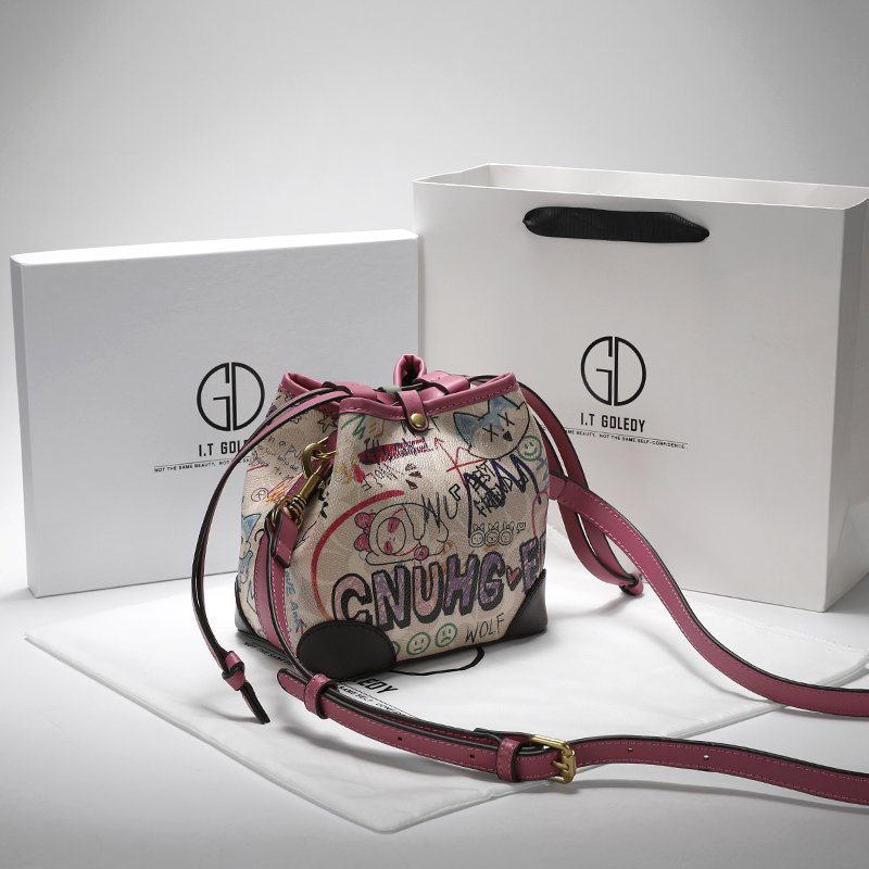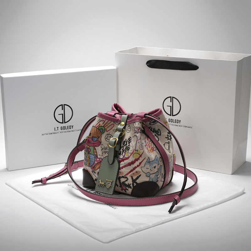 Hong Kong Cherose Keith leather graffiti bucket bag mini niche Messenger bag 2022 new all-match