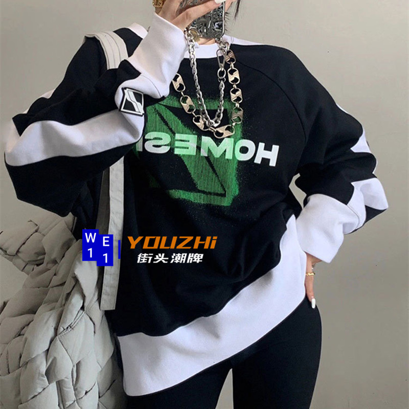 After testing welldone black and white color matching letter printing long-sleeved thick cotton T women's we11done spring and summer casual top