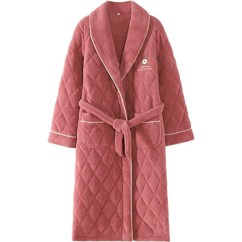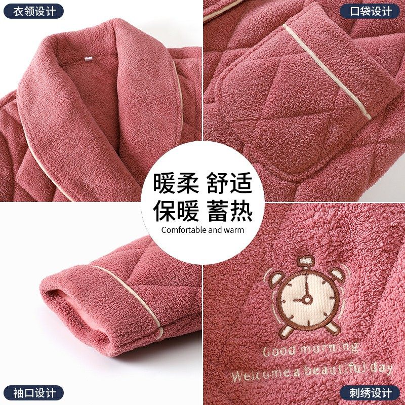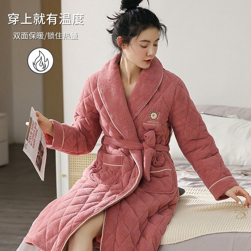 Sleeping Robe Lady Winter Triple Clip Cotton Coral Suede Plus Suede Thickening Medium Long Version Warm Bathrobe Flannel Flannel Suede