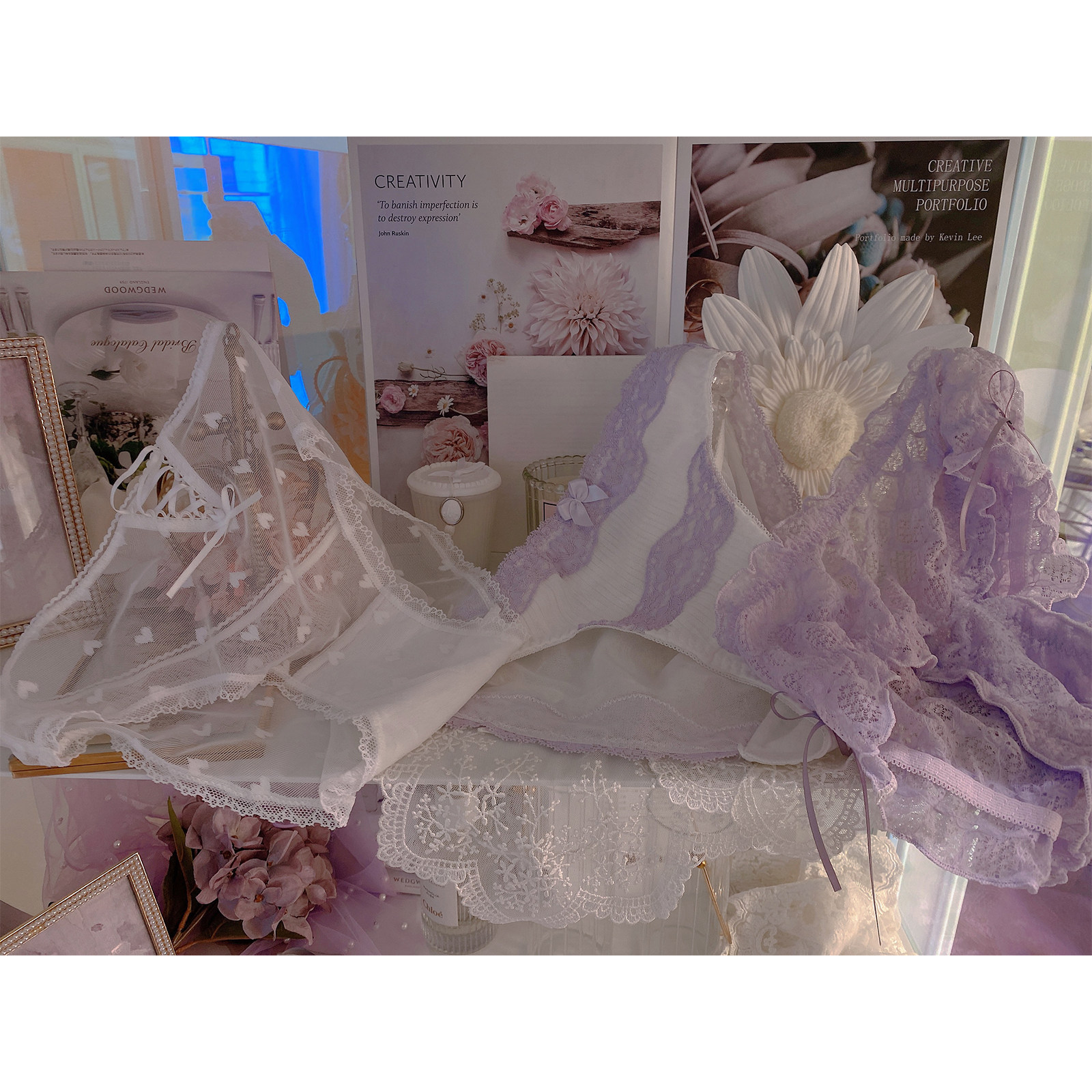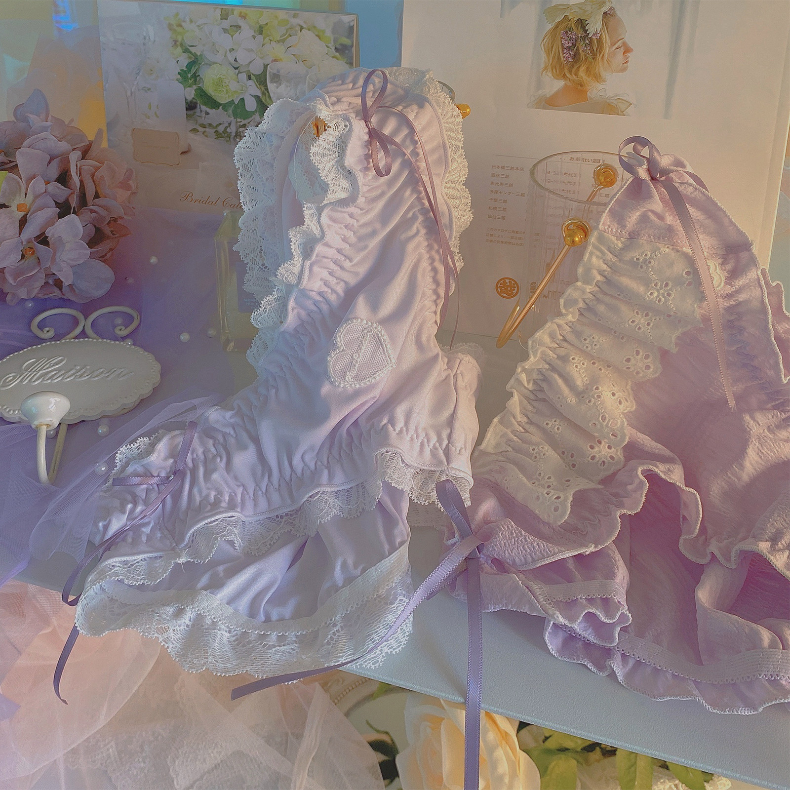 (Meritless Romantic Light Purple) Peach Honey 3 Dress Lady Pure Desire Lace Pants Breathable Pure Cotton Crotch Triangle Pants