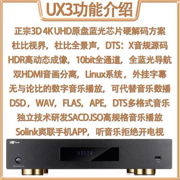 HDSIR UX3 HD 4K Blu-ray intercalation machine UHD double layer dubioptic hard disc player line electric