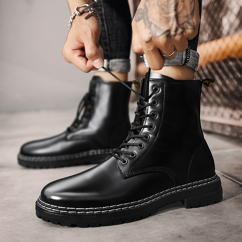 Male Shoes Summer Breathable Trendy Men Inglées Wind Casual Leather Shoes Black Tooling High Cylinder Martin Boots Waterproof Leather Boots