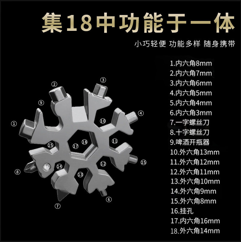 Snowflake tool card outdoor EDC portable combination hexagonal open wrench portable multi-function mountain bike maintenance