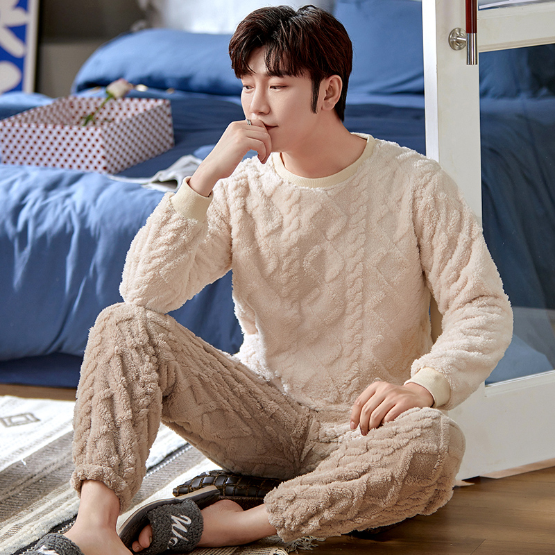 Coral velvet pajamas men's winter padded velvet 2021 New flannel autumn and winter men's home wear suit