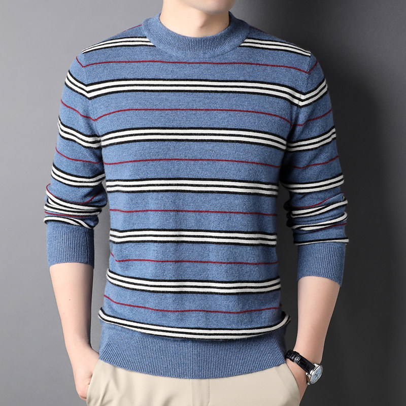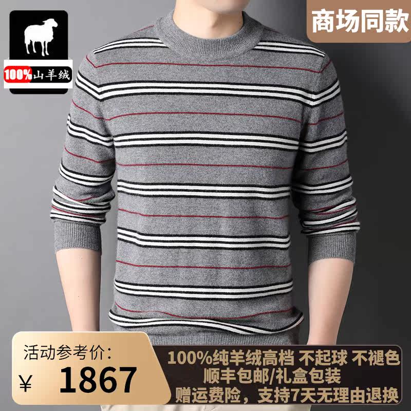 Ordos New Pure Kashmir Sweater Men Collapse Business Classic Stripe-Fracted Flower Knitted Sweater