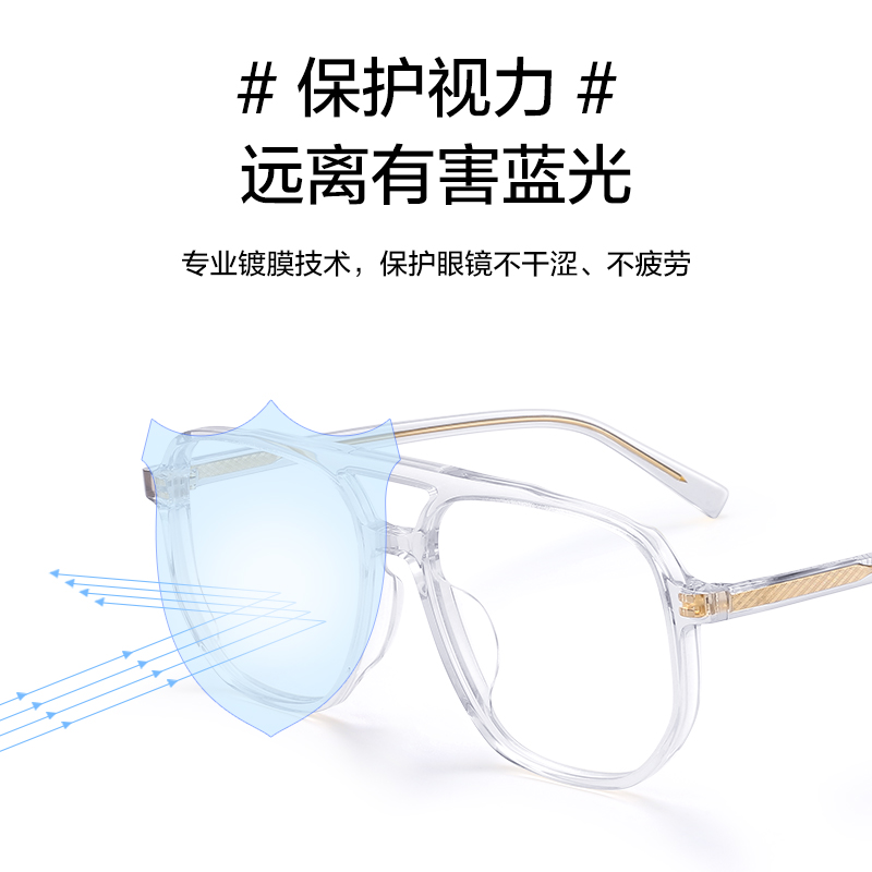 With no degree of anti-blue light lens (the same style as the little red book tide) 1.56 thin anti-blue light lens (suitable for 0-300 degrees) 1.61 thin anti-blue light lens (suitable for 0-500 degrees) 1.67 ultra-thin anti-blue light lenses (suitable for 0-800 degrees) 1.74 extra thin anti-blue light lenses (suitable for 300-1000 degrees)
