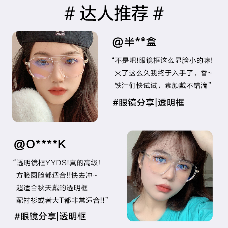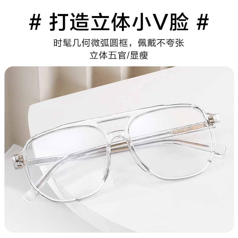 Transparent ins wind myopia glasses women can be equipped with a degree of plain face artifact discoloration tide double beam anti-blue light net red large frame