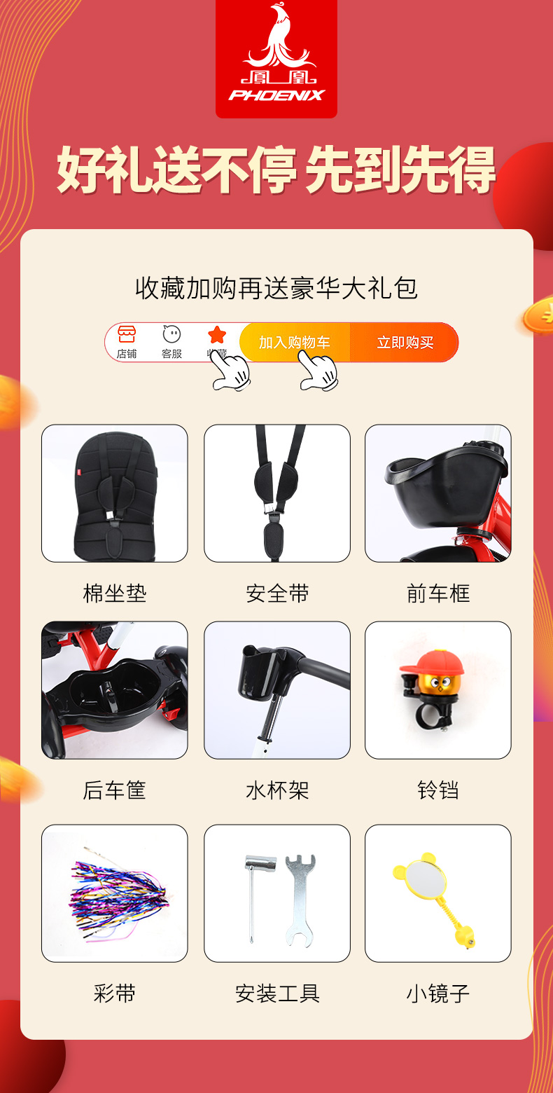 Phoenix slippery baby artifact children tricycle bicycle 1-3-6 years old baby baby trolley baby bicycle