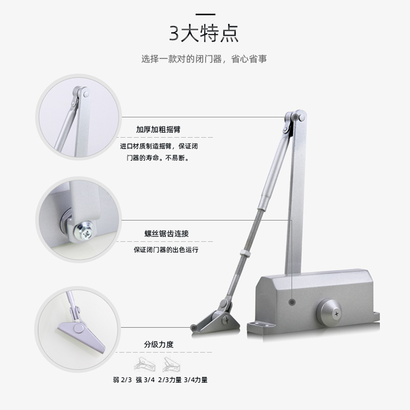 Hydraulic door closer household large small silent automatic closing simple buffer rebound positioning closed fire door