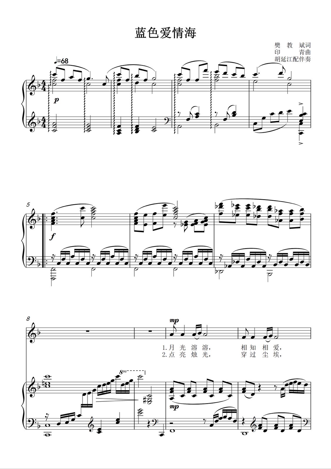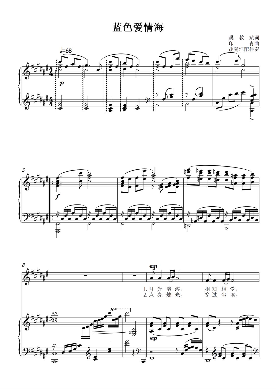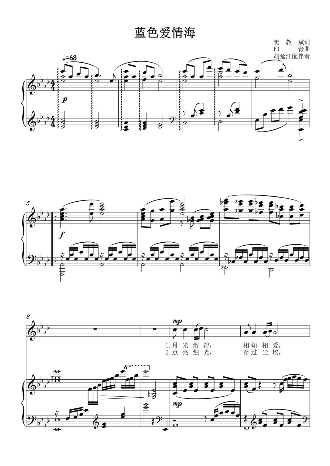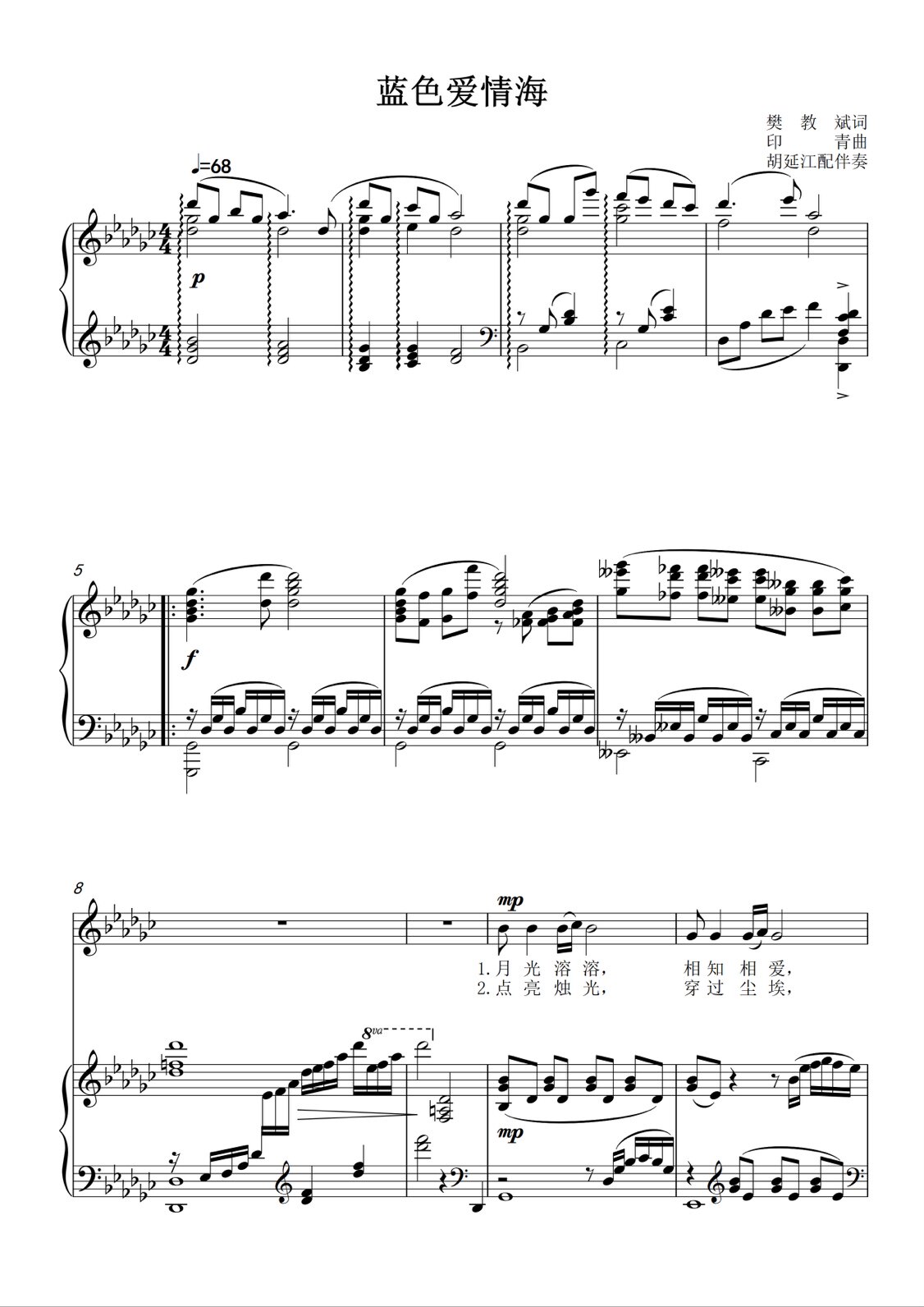 Blue Love Sea A Drop A G F E D Tuning Piano Vocal Piano Accompaniment Spectral five-line Spectral HD